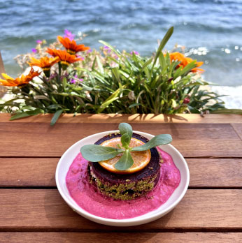 Menümüzde taze mezeleri, et ve deniz ürünlerini bulabilir, tatlılarımızla en güzel finalleri yapabilir, kahvaltımızı deneyerek güne başlayabilir veya dost sohbetlerinize içecek çeşitlerimizin eşlik etmesini tercih edebilirsiniz.